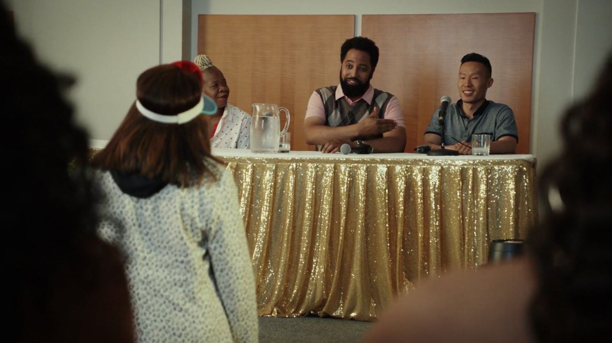 Scene from South Side on HBO Max Season 2 Episode 10 "Sarcophacouch" guest starring Chance The Rapper.